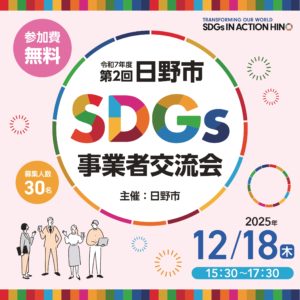 2019年7月1日に日野市がSDGs未来都市に選定されました。 本イベントでは、SDGsに関心を持つ日野市内事業者の皆様を広く募集しています。参加者同士の知識共有や事例紹介を通じて、地域全体の持続可能 Read more