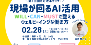 【第3回働き方改革セミナー】現場が回るAI活用〜WILL・CAN・MUSTで整えるウェルビーイングな働き方〜