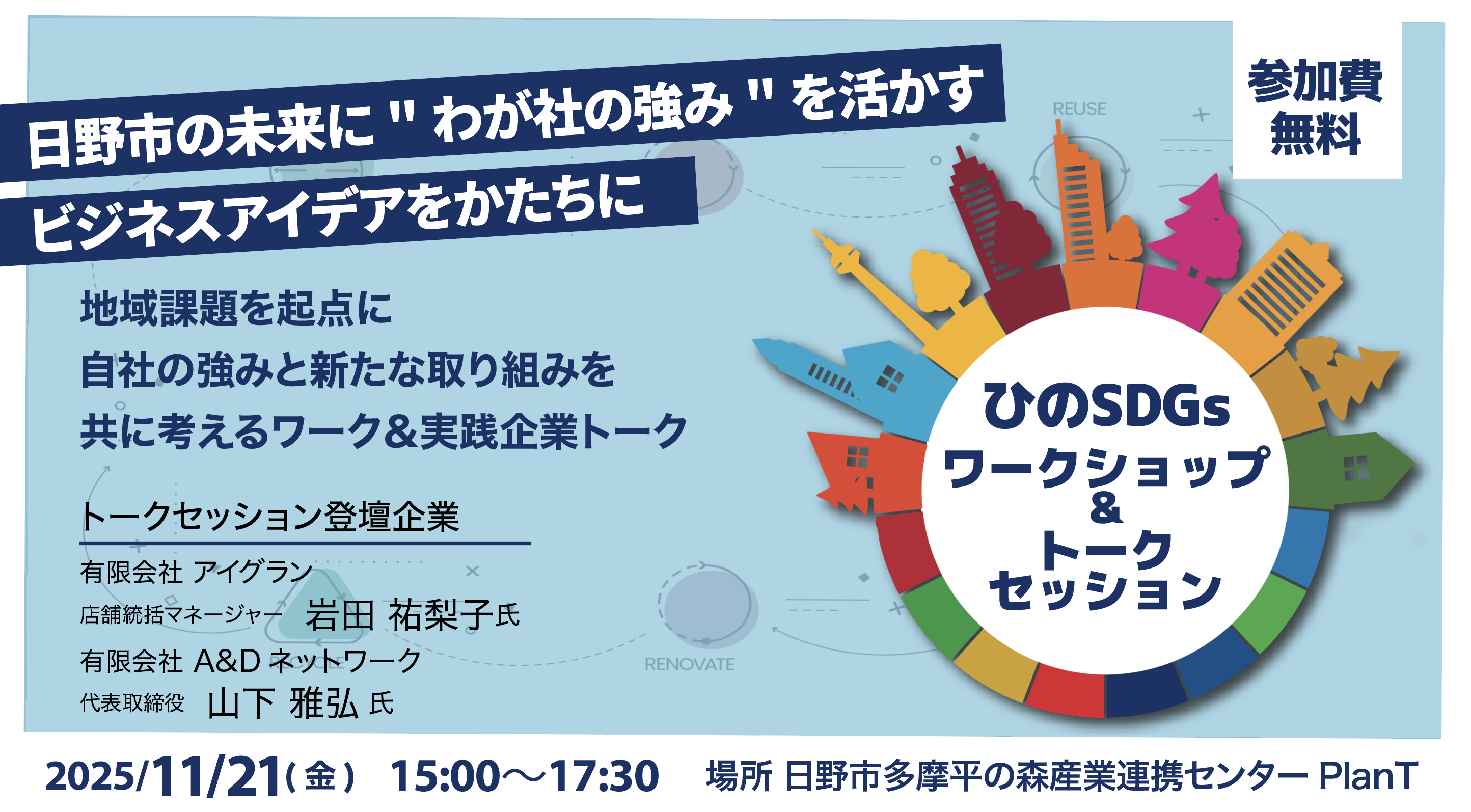 【対 象】ひのSDGs大学修了事業者、市内SDGs推進に興味のある中小企業、個人事業主の方