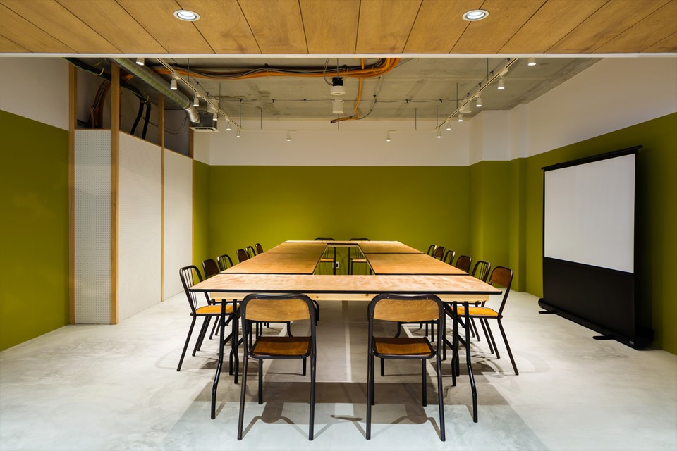 セミナー、講演、ワークショップなど大人数のイベントに適したスペース。スピーカーなどの音響機器やプロジェクターもご使用いただけます。